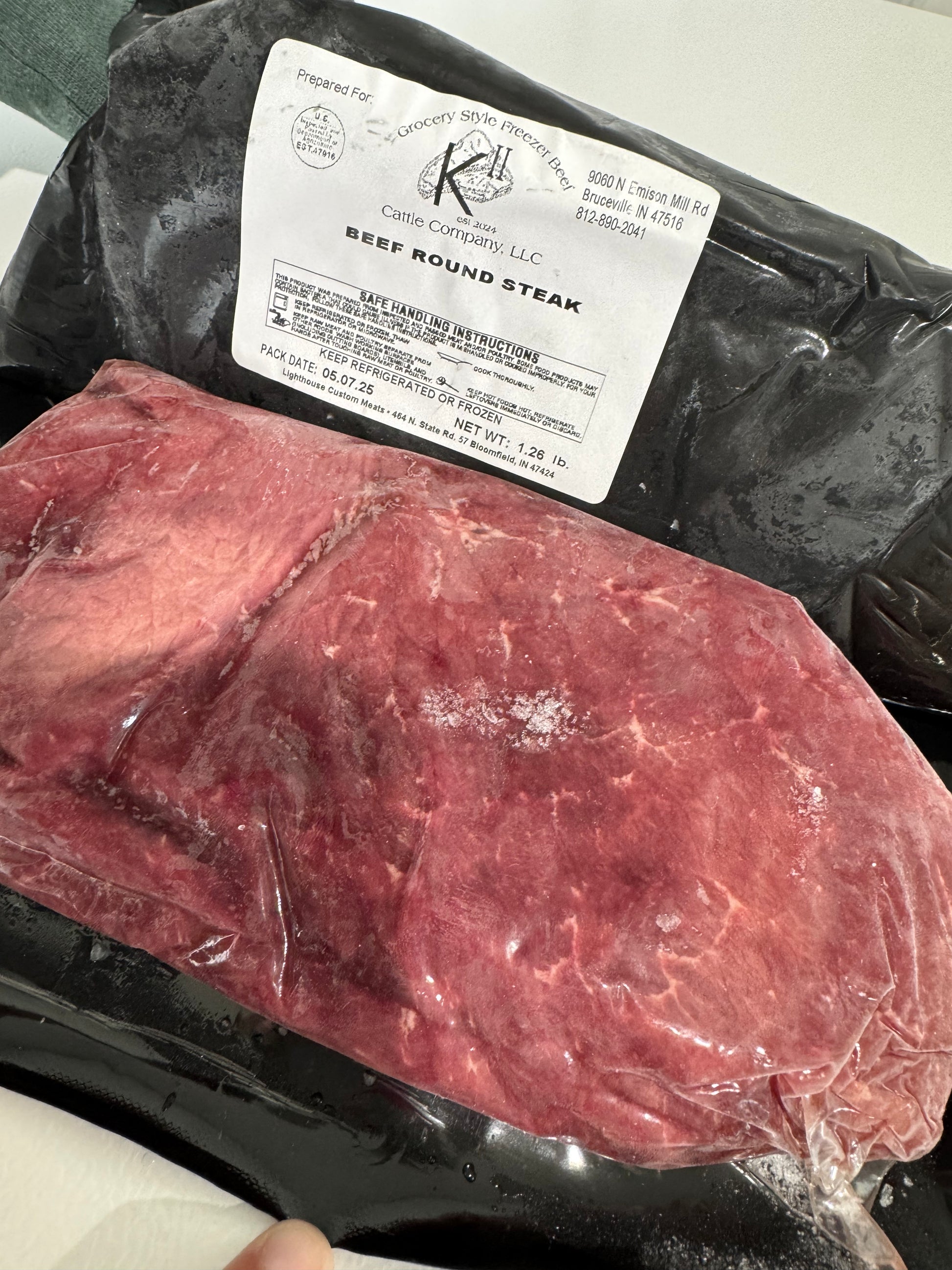 A steak cut from the round section of the beef. Best slow cooked for longer time, like in stew. Price is a set price based on the average weight of inventory. Weight of packages range from 1.26 pounds to 1.86 pounds